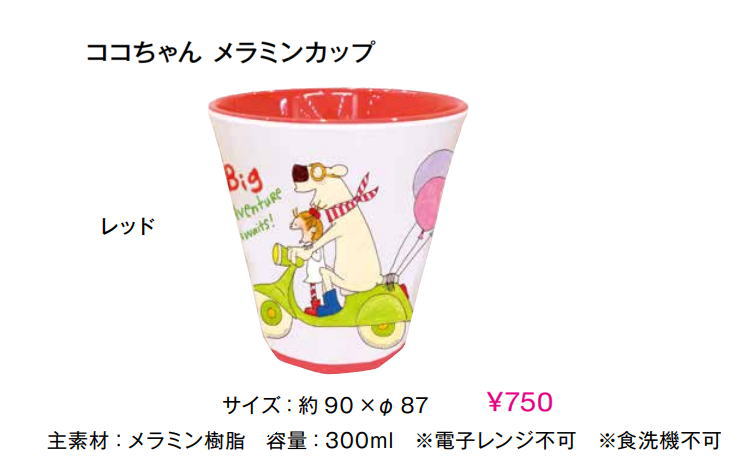 ココちゃんメラミンカップ「レッド」 拡大ページ゙