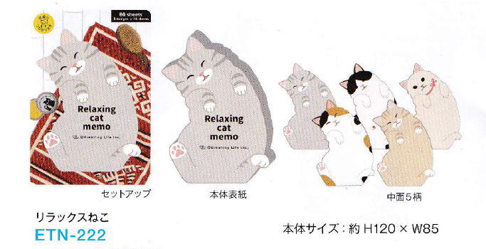 >>>アニマルダイカットメモ、「リラックスねこ」拡大ページ